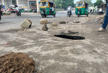 જેતલપુર ઓવરબ્રિજ નીચેના માર્ગ પર ભૂવો પડ્યો | Jetalpur overbridge collapsed on the road below