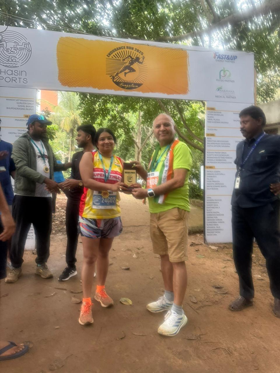 बेंगलुरु एंड्योरेंस रन भारत की सबसे कठिन अल्ट्रा-रनिंग प्रतियोगिताओं में से एक है, जिसमें प्रतिभागियों की मानसिक और शारीरिक क्षमता की परीक्षा होती है। इसमें धावक लगातार 3, 6, 12, 24, 48 और 72 घंटे तक दौड़ते हैं। देशभर से आए अनुभवी अल्ट्रारनर्स के बीच नित्या ने शानदार प्रदर्शन करते हुए 24 घंटे की महिला श्रेणी में पोडियम फिनिश हासिल की।