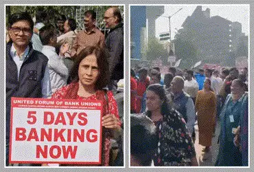 Bank Employees Protest: દેશભરના બેંક કર્મચારીઓએ પોતાની વર્ષો જૂની અને પડતર માંગણી ફાઈવ ડેઝ બેંકિંગ માટે ફરી એકવાર આંદોલનનું શસ્ત્ર ઉગામ્યું છે. યુનાઈટેડ ફોરમ ઓફ બેંક યુનિયનના નેજા હેઠળ આયોજિત આ હડતાળને કારણે બેંકિંગ સેવાઓ ખોરવાઈ છે. લાંબા સમયથી ચાલી રહેલી આ માંગણી પ્રત્યે સરકારના ઉદાસીન વલણ સામે રોષ પ્રગટ કરવા માટે કર્મચારીઓ રસ્તા પર ઉતરી આવ્યા છે, જેને પગલે નાણાકીય વ્યવહારો પર મોટી અસર જોવા મળી રહી છે.