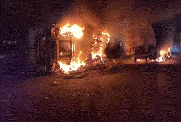 અકસ્માત બાદ વાહનો બળીને ખાખ