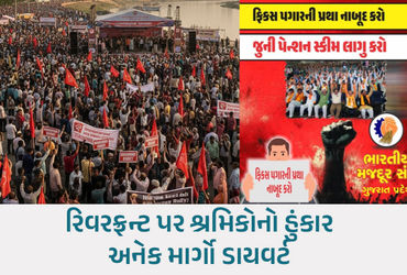 Worker Protest in Ahmedabad Riverfront: પોતાના લાંબા સમયથી પડતર પ્રશ્નોના ઉકેલની માંગ સાથે આજે ભારતીય મજદૂર સંઘ (BMS) દ્વારા અમદાવાદના રિવરફ્રન્ટ ખાતે ‘શ્રમિક આક્રોશ રેલી’નું વિશાળ આયોજન કરવામાં આવ્યું છે. બીજી તરફ, પગાર વધારા મુદ્દે હાઇકોર્ટના આદેશનું પાલન ન થતાં આંગણવાડી બહેનોએ પણ આંદોલન ઉગ્ર બનાવ્યું છે અને આગામી ૧લી ડિસેમ્બરથી 1000 બહેનોની ભૂખ હડતાળનું એલાન કર્યું છે.