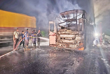 આણંદ : ગુજરાતમાં રાજસ્થાનના જોધપુરવાળી થતા રહી ગઈ હતી. પાવાગઢથી દર્શન કરી બાવળા તરફ જતી લક્ઝરી બસમાં આણંદ પાસે ભૂમેલ બ્રિજ નજીક આગ ભભૂકી ઉઠી હતી. ડ્રાઈવર અને ક્લીનરે સમયસૂચકતા વાપરી બસમાં સવાર ૫૬ મુસાફરોને ત્વરિત ઉતારી દેતા તમામનો જીવ બચી જતા જાનહાનિ ટળી હતી. જોકે, બસ બળીને ખાક થઈ ગઈ હતી.