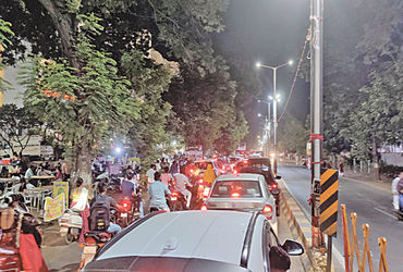 આણંદ શહેર સહિત જિલ્લામાં નવરાત્રિ અંતિમ ચરણ તરફ છે. ત્યારે આણંદ શહેરના ગરબા ગ્રાઉન્ડો પર મોડી રાત સુધી ખેલૈયાઓની ભીડ જોવા મળે છે. આણંદ સોજીત્રા રોડ ઉપર આવેલી એલિકોન કંપની નજીકના મા શક્તિ ગરબા મહોત્સવનું આયોજન કરાયું છે. ત્યારે ખેલૈયાઓની આ સ્થળે ભારે ભીડ જામતી હોવાથી રાત્રિના ૧૧ કલાક બાદ મુખ્ય માર્ગની બંને તરફ વાહનોનું પાકગ ખડકી દેવામાં આવે છે. પરિણામે ટ્રાફિકની લાંબી કતારો લાગે છે. મુખ્ય હાઇવે માર્ગ હોવાથી ભારે વાહનો પણ પસાર થતા હોય છે. ત્યારે યુવક- યુવતીઓ આડેધડ રસ્તો ક્રોસ કરતા હોવાથી અકસ્માતની સંભાવના છે. પોલીસની આ સ્થળે હાજરી હોવા છતાં ટ્રાફિકની લાંબી કતારો લાગતા લોકોમાં આક્રોશ ફેલાયો છે. ત્યારે અકસ્માત કે જાનહાનિ થાય તે પહેલા તંત્ર દ્વારા ગરબા આયોજકો સામે લાલ આંખ કરી સમસ્યા હલ કરવા માંગણી ઉઠી છે.
