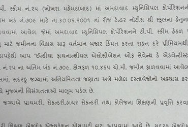 ટેન્ડર અને લીઝની શરતોનો ભંગ થયો હોવાનુ જણાય છે. આ કારણથી આ પ્લોટની ફાળવણી