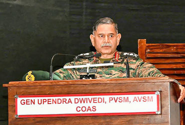 સોમવારે દિલ્હીના માણેક શો સેન્ટર ખાતે ડિફેન્સ ડાયલોગ કાર્યક્રમમાં હાજર રહેલા થલ સેનાધ્યક્ષ(COAS) જનરલ ઉપેન્દ્ર દ્વિવેદીએ અનેક મુદ્દાઓ પર ખુલીને ચર્ચા કરી. તેમણે કહ્યું કે, ‘ભારત કોઈપણ પરિસ્થિતિમાં લાંબી લડાઈ માટે તૈયાર છે અને દુશ્મન ભલે પાકિસ્તાન હોય કે તેના સમર્થિત આતંકવાદીઓ, સેના દરેક ખતરાનો જડબાતોડ જવાબ આપવાની ક્ષમતા ધરાવે છે. પાકિસ્તાન ભલે પડદા પાછળ છુપાઈને આતંકવાદને ગમે તેટલો પ્રોત્સાહન આપે, ભારતીય સેના તેની દરેક હરકત પર નજર રાખે છે.’
