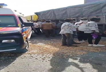 ભરેલ એક ટ્રકમાંથી અકસ્માતને કારણે મગફળી રસ્તા પર ઢોળાઇ જતા નુકશાન પહોંચ્યું