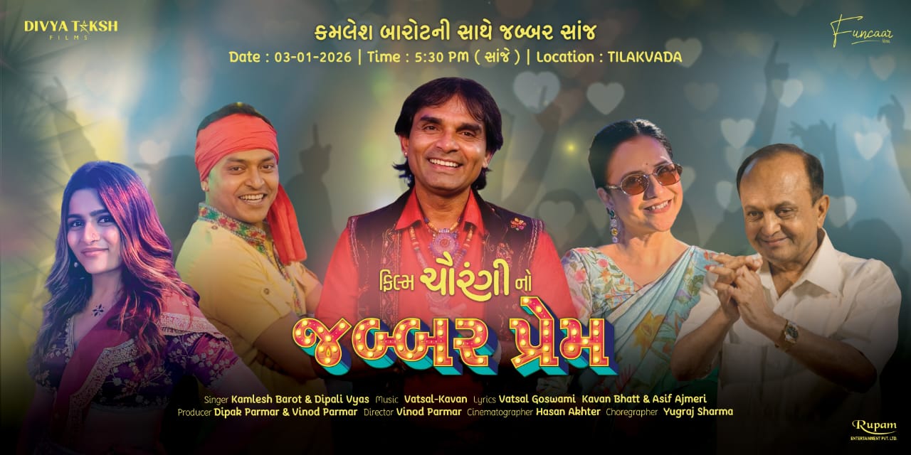 આગામી 30 જાન્યુઆરીએ રિલીઝ થનારી ફિલ્મ ચૌરંગીનું તાજેતરમાં લોન્ચ થયેલું ગીત ‘જબ્બર પ્રેમ’ સોશિયલ મીડિયા પર ભારે ધૂમ મચાવી રહ્યું છે. મહત્વની વાત એ પણ છે કે, આ ગીત પ્રથમ ગુજરાતી સિંગલ ટેક સોંગ છે. આ ગીત જાણીતાં ગાયક કમલેશ બારોટે ગાયું છે. આ ગીતને તિલકવાડા ખાતે લોન્ચ કરવામાં આવ્યું હતું જ્યાં લોકોએ કમલેશ બારોટ અને ફિલ્મની સ્ટાર કાસ્ટ સાથે દિલ ખોલીને ડાન્સ કર્યો હતો. પ્રેમ અને લાગણીથી ભરપૂર આ ગીત દર્શકોના દિલને સ્પર્શી રહ્યું છે અને ફિલ્મ પ્રત્યે ઉત્સુકતા વધુ વધારી છે.