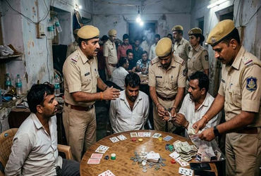 જામનગરમાં રણજીત રોડ પર બાવાગોર વાળી શેરીમાં ગઈકાલે મોડી રાત્રે ઘોડીપાસા નો જુગાર રમાઈ રહ્યો હોવાની બાતમી સીટી એ. ડિવિઝન પોલીસની ટીમને મળતાં અઢી વાગ્યાના અરસામાં દરોડો પાડ્યો હતો, ત્યારે ભારે નાશ ભાગ થઈ હતી. પોલીસે ત્રણ આરોપીઓને ઝડપી લીધા છે, જયારે અન્ય પાંચ જુગારીયા તત્વો ભાગી છૂટ્યા હોવાથી તેઓને ફરારી જાહેર કરી શોધખોળ હાથ ધરી છે.