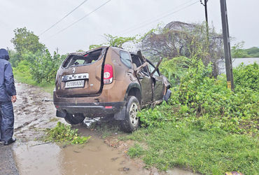 અમદાવાદના ઓગણજ વિસ્તારના ચાર લોકો કારમાં ચોટીલા મંદિરે પૂનમ ભરવા ગયા હતા. પરત ફરતી વખતે બાવળા નજીક તેમની કારનું ટાયર ફાટતા ચાલકે કાબૂ ગુમાવતા કાર રોડ પરથી નીચે ઉતરીને પલટી ગઈ અને પાણીથી ભરેલા ખાડામાં પડી હતી.