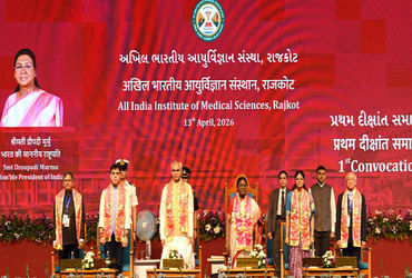 રાજકોટ એઈમ્સના પ્રથમ દીક્ષાંત સમારોહમાં રાષ્ટ્રપતિનું ઉદબોધન : ગુજરાતમાં માતા અને બાળકના સ્વાસ્થ્ય અને સિકલસેલ, એનિમિયા જેવા આનુવંશિક વિકારો સહિત પ્રાદેશિક-વિશિષ્ટ રોગ પર રીસર્ચ કરવા સુચન