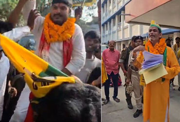 તેજપ્રતાપની પાર્ટીના ઉમેદવારોનો અનોખો અંદાજ, કોઈ ભેંસ પર તો કોઈ હાથકડીમાં ઉમેદવારી નોંધાવા પહોંચ્યું…
