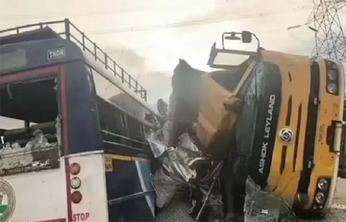 નવી દિલ્હી : તેલંગણાનાં રંગારેડ્ડી જિલ્લામાં સોમવાર સવારે એક ભીષણ માર્ગ અકસ્માત થયો હતો. એક બસ ડમ્પર સાથે અથડાતાં ૨૪ લોકોનાં મોત થયા છે અને અન્ય કેટલાક લોકો ઘાયલ થયા છે.