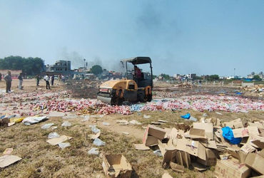 બુલડોઝર ફેરવીને દારૂનો નાશ