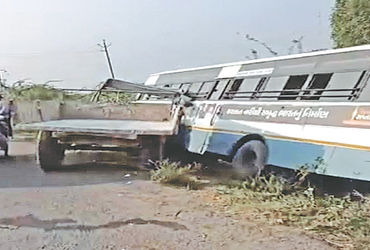 સુરેન્દ્રનગર : વેળાવદરથી સુરેન્દ્રનગર તરફ મુસાફરો અને વિધાર્થીઓને લઈ જઈ રહેલી એસ.ટી બસ દિગસર-દાણાવાડા ચોકડી પાસે પહોંચતા રસ્તા પર જઈ રહેલા ટ્રેકટર સાથે અથડાતા અકસ્માત સર્જાયો હતો.
