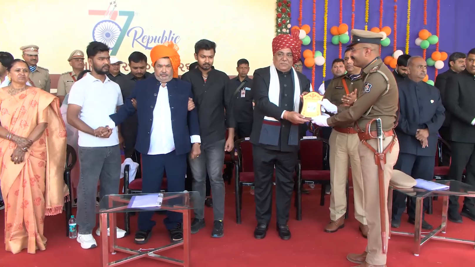 ૭૭માં પ્રજાસત્તાક પર્વની ગીર સોમનાથના તાલાલાના આંગણે સહકારી મિલ કમ્પાઉન્ડમાં ઉમંગ, ઉલ્લાસ અને દેશભક્તિસભર વાતાવરણમાં માહોલમાં જિલ્લાકક્ષાના ૭૭માં પ્રજાસત્તાક પર્વની ઉજવણી કરવામાં આવી હતી.