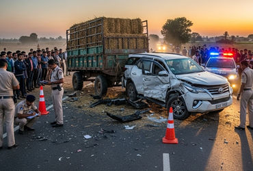 આ ઘટના રવિવારે સવારે લગભગ 6:30 વાગ્યે બની હતી. ફોર્ચ્યુનર કાર (નંબર- MP 07 CG 9006) ઝાંસી તરફથી ગ્વાલિયર તરફ આવી રહી હતી. માલવા કોલેજ પાસેના એક વળાંકમાંથી રેતી ભરેલી ટ્રેક્ટર-ટ્રોલી અચાનક હાઈવે પર આવી. ફોર્ચ્યુનરની ગતિ ખૂબ જ તેજ હોવાને કારણે, ડ્રાઇવરને ગાડી પર કાબૂ મેળવવાનો સહેજ પણ મોકો મળ્યો નહીં અને કાર સીધી ટ્રોલીના પાછળના ભાગમાં ઘૂસી ગઈ.