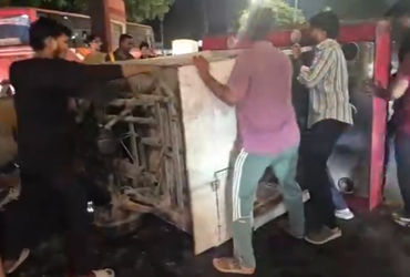 ફતેગંજ બ્રિજ પર સ્કૂટરને અડફેટમાં લઇ થ્રી વ્હીલ ટેમ્પો પલટી ગયો | three vheel tempo turnout after ac…