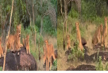 2 મોટા અને 9 બાળ સિંહોને નિહાળી પ્રવાસીઓ રોમાંચિત : જંગલ સફારી શરૂ થયા બાદ પ્રથમ વખત સમૂહમાં આટલી મોટી સંખ્યાવાળો સિંહ પરિવાર જોવા મળ્યો