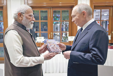 નવી દિલ્હી : ભારત અને રશિયાએ અમેરિકન પ્રમુખ ડોનાલ્ડ ટ્રમ્પના દંડ સ્વરૂપે લગાવેલા ટેરિફ અને પશ્ચિમી દેશોના પ્રતિબંધોથી સર્જાયેલી સ્થિતિનો સામનો કરવા શુક્રવારે બંને દેશ વચ્ચે આર્થિક અને વ્યાપારિક ભાગીદારી મજબૂત કરવા પંચવર્ષીય યોજના પર સહમતી વ્યક્ત કરી છે. આ યોજના હેઠળ બંને દેશોનો દ્વિપક્ષીય વેપાર હાલના વાર્ષિક ૬૪ અબજ ડોલરથી વધારીને વાર્ષિક ૧૦૦ અબજ ડોલર સુધી લઈ જવાનું લક્ષ્ય છે. પ્રમુખ પુતિનના આ પ્રવાસમાં ભારત-રશિયાએ કુલ ૧૯ કરાર કર્યા છે. વધુમાં રશિયા સાથે સંબંધો તોડવા ભારત પર પ્રમુખ ટ્રમ્પના ભારે દબાણ છતાં ભારત-રશિયાની શિખર મંત્રણા પછી વડાપ્રધાન મોદીએ જણાવ્યું હતું કે, વૈશ્વિક સ્તરે અનેક ઉથલ-પાથલ અને ભૂ-રાજકીય તણાવો વચ્ચે પણ આઠ દાયકાથી વધુ જૂની ભારત-રશિયાની મિત્રતા ધૂ્રવ તારા સમાન અડગ અને અચળ છે. રશિયન પ્રમુખ વ્લાદિમિર પુતિને કહ્યું કે, અમેરિકન પ્રમુખ ટ્રમ્પના દબાણ છતાં રશિયા ભારતને ફ્યુઅલનો પૂરવઠો અવિરત ચાલુ રાખશે.