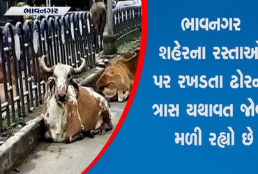 ભાવનગર : ભાવનગર શહેરમાં મહાપાલિકા દ્વારા દરરોજ રખડતા ઢોર પકડવાની કામગીરી કરવામાં આવે છે પરંતુ મહાપાલિકાની કામગીરી વચ્ચે પણ રખડતા ઢોરનો ત્રાસ યથાવત છે. ચોમાસામાં રખડતા ઢોરનો ત્રાસ વધુ હોય છે તેથી આ દિવસોમાં મહાપાલિકાની દોડધામ વધતી હોય છે. હાલ હજુ કેટલાક વિસ્તારમાં રખડતા ઢોરનો ત્રાસ યથાવત હોવાનુ જાણવા મળેલ છે.