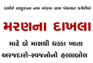 ચાંદોદ: ડભોઈ તાલુકાના નવા માંડવા ગ્રામ પંચાયત કચેરી ખાતે મરણના દાખલા માટે બે બે માસથી ધક્કા ખાતા અરજદારો અને સ્વજનોએ હલ્લાબોલ કરી તલાટી કમ મંત્રીનો ઉધડો લીધો હતો.
