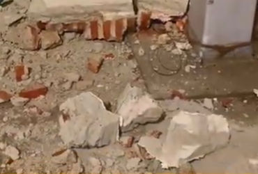 આ એ જ પિલ્લર છે જ્યાંથી અગાઉ પોપડા ખરવાની શરુઆત થઈ હતી.એ પછી ઈમારતને વધારે નુકસાન ના થાય તે માટે લોખંડના માળખા વડે ઈમારતને અંદરથી ટેકો આપવામાં આવ્યો છે.મંગળવારે રાત્રે આ પિલ્લરમાંથી અગાઉ કરતા પણ મોટા પોપડા ખર્યા હતા.જોકે ચારે તરફ બેરિકેડિંગ કરાયું હોવાથી કોઈને ઈજા થઈ નહોતી.