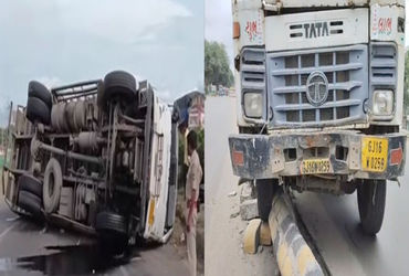 મુજમહુડા-લાલબાગ રોડ પર કોર્પોરેશનના ડમ્પરની બ્રેક ફેલ થતાં ડિવાઈડર તોડ્યું, ચાર જણાનો બચાવ | VMC’s d…