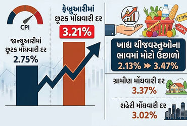 સરકારી આંકડાઓ અનુસાર જાન્યુઆરીમાં છૂટક મોંઘવારી દર (CPI) 2.75 ટકા હતો, જે ફેબ્રુઆરીમાં વધીને 3.21 ટકા પર પહોંચ્યો છે. આ મોંઘવારી શહેરો કરતાં ગામડાઓમાં વધુ અનુભવાઈ રહી છે. ફેબ્રુઆરીમાં ગ્રામીણ મોંઘવારી દર 3.37 ટકા અને શહેરી મોંઘવારી દર 3.02 ટકા રહ્યો છે. જોકે રાહતની વાત એ છે કે, આ આંકડો હજુ પણ રિઝર્વ બૅંક ઑફ ઇન્ડિયા(RBI)ના ચાર ટકાના લક્ષ્યાંકથી નીચે છે.