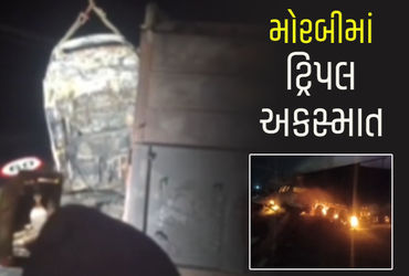 મળતી માહિતી અનુસાર, માળિયા સૂરજબારી પુલ પર એક કન્ટેનર પલટી મારી ગયું હતું. જેની પાછળ આવતી એક ટ્રકે લેન બદલવાનો પ્રયાસ કર્યો, આ દરમિયાન પાછળ આવતી કાર ટ્રક સાથે અથડાતા બંને વાહનોમાં ભયાનક આગ લાગી હતી. ટ્રકમાં અને કારમાં સવાર 2-2 લોકો મોત થયા છે. ઘટનાની જાણ થતા મોરબી અને ભચાઉ ફાયર વિભાગની ટીમ ઘટનાસ્થળ પર પહોંચીને કારમાં સવાર સાત લોકોનું રેસ્ક્યુ કરાયું હતું.