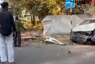 યુનિ.પેવેલિયન નજીક પૂરઝડપે પસાર થતી કારે ગેટની દિવાલ તોડી નાંખી | overspeeded car damaged wall of MS…