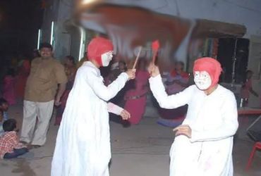 ચાર થી પાંચ યુવાનો મોઢે માસ્ક પહેરી ભરવાડી ડ્રેસમાં વાણીયા બને છે અને નવરાત્રી