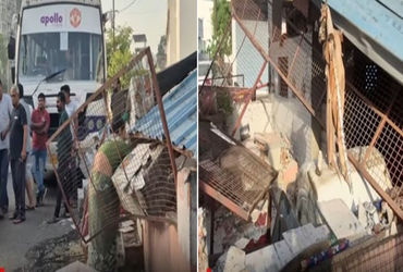 વડોદરાના સમામાં પુનમ નગર ચાર રસ્તા નજીક લક્ઝરી બસની ટક્કર વાગતા મંદિરનો શેડ ધરાશાયી, મહિલાનો બચાવ | …
