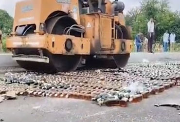 સવારે કોયલી વિસ્તારમાં અટલાદરા, જેપી રોડ, ગોત્રી સહિતના છ પોલીસ સ્ટેશનમાં કબજે લીધેલા દારૂના મોટા જથ્થાને ગોઠવી દઈ તેના પર ઉચ્ચ પોલીસ અધિકારીઓ, કલેકટર કચેરીના અધિકારીઓ, નશાબંધી વિભાગના અધિકારીઓ સહિતના કાફલાની નિગરાણીમાં બુલડોઝર ફેરવવામાં આવ્યું હતું.