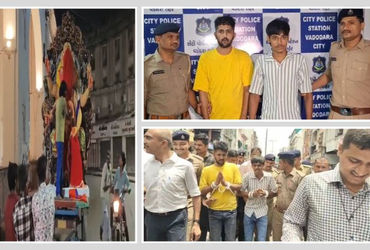 Vadodara Ganesh Mahotsav : વડોદરાના પાણીગેટ વિસ્તારમાં ગણેશજીની પ્રતિમા પર ઈંડા ફેંકવાના બનેલા બનાવ બાદ પોલીસે બે આરોપીઓનું જાહેરમાં સરઘસ કાઢ્યું હતું અને તેમને માફી પણ મંગાવી હતી. આ ઘટના માંજલપુરના ગણેશ મંડળની શ્રીજીની પ્રતિમાની સ્થાપના વેળાએ બની હતી. મોડી રાત્રે અંદાજે ૨:૩૦ વાગ્યાની આસપાસ પાણીગેટ પાસેના મદાર માર્કેટ નજીક કોઈ અજાણ્યા શખ્સોએ પ્રતિમા પર ઈંડા ફેંક્યા હતા. આ ઘટનાને કારણે ગણેશ મંડળોમાં ભારે રોષ ફેલાયો હતો.