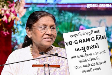 VB G RAM G: રાષ્ટ્રપતિ દ્રૌપદી મુર્મૂએ રવિવાર(21 ડિસેમ્બર)ના રોજ વિકસિત ભારત રોજગાર અને આજીવિકા મિશન ગ્રામીણ (VB G RAM G) બિલ પર મંજૂરીની મહોર મારી દીધી છે. રાષ્ટ્રપતિની સહી બાદ આ બિલ હવે કાયદો બની ગયો છે. મહત્વનું છે કે VB G RAM G બિલને પહેલા લોકસભા અને બાદમાં રાજ્યપાસમાં ચર્ચા અને ભારે વિરોધ બાદ પાસ કરવામાં આવ્યું હતું. હવે ‘જી રામજી જી’ કાયદા મુજબ ગ્રામીણ પરિવારોને પ્રતિ વર્ષ 125 દિવસની બંધારણીય રોજગારી હક્ક મળશે જે પહેલા મનરેગા મુજબ 100 દિવસ હતો.