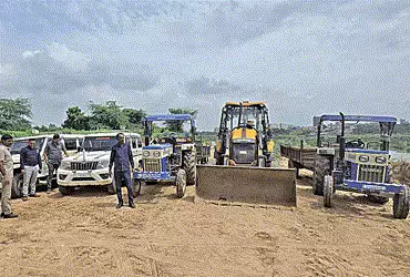 આવી. આ રેડ દરમિયાન એક જેસીબી મશીન અને બે ટ્રેક્ટર સહિત કુલ ૫૯ લાખ રૃપિયાનો