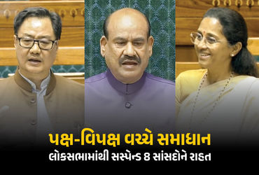 લોકસભા સ્પીકર ઓમ બિરલા (Om Birla)એ ગૃહમાં પક્ષ-વિપક્ષના સભ્યોની વાત સાંભળી અને અપીલ કરી કે, ગૃહની પવિત્રતા જાળવવામાં આવે. ત્યારબાદ ગૃહમાં પ્રસ્તાવ પર મતદાન થયા બાદ સ્પીકરે પ્રસ્તાવ પાસ થવાની જાહેરાત કરી હતી. આ સાથે સસ્પેન્ડ થયેલા આઠેય સાંસદોને સ્પેન્શન રદ કરવામાં આવ્યા છે.