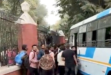 બસ રોડ પર જ ધસી ગઇ હોત તો અનેક વાહનચાલકો અડફેટે આવી જાત