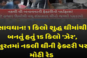 સુરત, : સુરત એસઓજીએ ઓપરેશન શુઘ્ધિ અંતર્ગત સચિન જીઆઇડીસીમાં જીઇબીના સબ સ્ટેશન નજીક સબકા ફુડ નામની ફેક્ટરીમાં દરોડા પાડી વિદુર ગાયનું ઘી અને શુઘ્ધ ઘીના નામે સમગ્ર ગુજરાત તથા અન્ય રાજયોમાં વેચાણ થતું સ્વાસ્થય માટે હાનિકારક કેમિકલ યુકત ઘી બનાવવાની ફેક્ટરી ઝડપી પાડી કુલ રૂ. 36.36 લાખના મુદ્દામાલ સાથે બે ભાગીદારની ધરપકડ કરી છે.