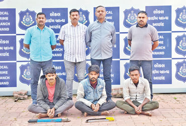 આણંદ જિલ્લાના અલગ અલગ સ્થળોએ તાજેતરમાં હાઈટેન્શન ટ્રાન્સમિશન લાઈનના એલ્યુમિનિયમ વાયરની ચોરીઓ થઈ હોવાના ગુનાઓ બન્યા હતા. જે અંગે આણંદ એલસીબીની અલગ અલગ ટીમો દ્વારા તપાસ હાથ ધરવામાં આવી હતી. દરમિયાન કણભા ગામે સીમ વિસ્તારમાંથી ઈલેક્ટ્રીક વાયરની ચોરી થયેલા ગુનામાં સારોલ ગામના તળપદા ગેંગના માણસો સંડોવાયેલા હોવાનું જાણવા મળ્યું હતું અને તેમાં મુખ્ય સૂત્રધાર ધુળાભાઈ નાનાભાઈ તળપદા અને તેનો દીકરો અર્જુનભાઈ અને તેના કુટુંબના માણસોની સંડોવણી છે. ચોરી કરવા માટે બોલેરો પિકઅપ ડાલાનો ઉપયોગ કરતા હોવાનું જાણવા મળ્યું હતું. સાથે સાથે તેમના મળતીયા માણસોએ અમિયા-દિવેલ રોડ ઉપર કણભા સીમ વિસ્તારમાં ગાડીયા પુરા પ્રાથમિક શાળા નજીક ચોરી કરેલા ઇલેક્ટ્રીક લાઈનના વાયરો સંતાડયા હોવાની અને આ વાયરો લઈ જવા માટે તેઓ સોમવારની રાત્રિના સુમારે ભેગા થવાના હોવાની માહિતી આણંદ એલસીબી પોલીસને મળતા પોલીસની ટીમ એક્શનમાં આવી ગઈ હતી. તળપદા ગેંગના ત્રણ શખ્સો ભેગા થયા છે અને અન્ય માણસોની રાહ જુએ છે તેવી બાતમી પોલીસને મળતા એલસીબી પોલીસની ટીમે બાતમી વાળા સ્થળે તપાસ કરતા ત્રણ શખ્સો શંકાસ્પદ હાલતમાં જોવા મળ્યા હતા અને પોલીસને જોઈ ભાગવાનો પ્રયાસ કરતા પોલીસે તેઓને કોર્ડન કરીને ઝડપી પાડયા હતા.પોલીસે તેઓની અંગ જડતી કરતા તેમની પાસેથી એક લોખંડનું મોટું કટર તથા હેકક્ષો બ્લેડ મળી આવી હતી. જે જગ્યાએ તેઓ હાજર હતા તે અંગે પૂછપરછ કરતા તેઓ ગલ્લા કલાક કરવા લાગ્યા હતા, જેથી પોલીસે જગ્યા ઉપર તપાસ કરતા બે મોટા ગોળ વાળેલા ઈલેક્ટ્રીક વાયરો મળી આવ્યા હતા. જે હાઈટેન્શન ઇલેક્ટ્રીક લાઈનમાં વપરાતા એલ્યુમિનિયમના વાયર હોવાનું જાણવા મળ્યું હતું.