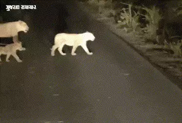 સ્ટેટ હાઇવે ક્રોસિંગ કરી રહેલા સિંહના ટોળાનો વીડિયો સોશિયલ મીડિયામાં વાઈરલ થયો છે. આમ અમરેલી સહિત સૌરાષ્ટ્રના અનેક વિસ્તારોમાં સિંહના આંટાફેરના દ્રશ્યો સામે આવતા હોય છે. ઘણી વખત શિકારની શોધમાં ગામમાં આવેલા સિંહે ગાયનું મારણ કર્યું હોવાના પણ વીડિયો સામે આવતા હોય છે.