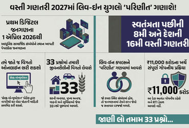 Indian Census 2027: ભારતની 16મી વસ્તી ગણતરી હવે માત્ર આંકડા ભેગા કરવાની માથાકૂટ પૂરતી સીમિત નહીં રહે, પરંતુ આપણી સંપૂર્ણ જીવનશૈલીનો ‘ડિજિટલ રૅકોર્ડ’ બનશે. આ વખતે સરકારે આ પ્રક્રિયાને સંપૂર્ણપણે ડિજિટલ બનાવી છે. 1 એપ્રિલ, 2026થી શરૂ થનારા આ મહા અભિયાનમાં નાગરિકો પોતાની માહિતી ઘરે બેઠા ઓનલાઇન પણ ભરી શકશે. આ પહેલીવાર છે જ્યારે વસ્તી ગણતરીમાં ‘સ્વ-ગણતરી’ (Self-Enumeration)નો વિકલ્પ અપાયો છે. હાલમાં જ સરકારે વસ્તી ગણતરીમાં કયા પ્રશ્નો પૂછાશે એની યાદી બહાર પાડી છે. ચાલો જાણીએ કે એ 33 પ્રશ્નો કયા છે.